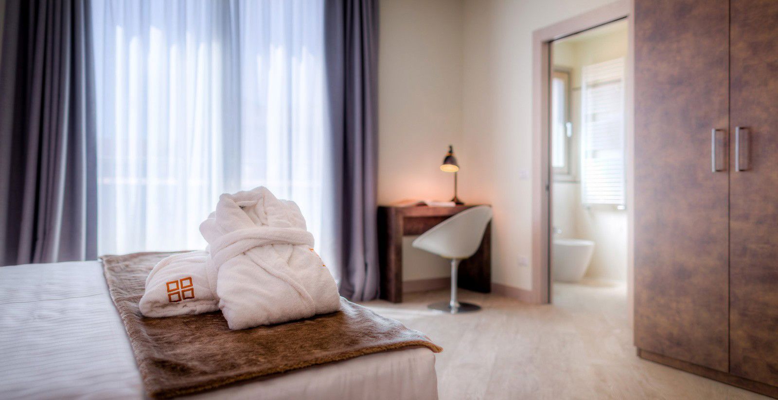 Spacious studios, stylish and comfortable, with warm and inviting colors that recall the colors of the earth and nature located on the fourth floor. They feature a balcony overlooking Florence. The interiors, lit by large windows, are furnished with fully equipped kitchenette, completed with dishwasher, microwave oven and induction hob, a dining table and desk, Smart TV, as well as a comfortable wardrobe with laptop safety box.