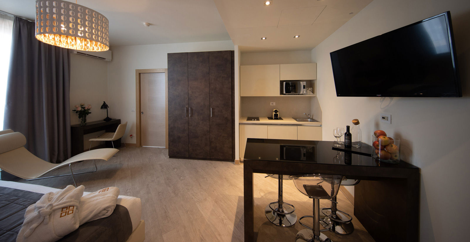 Ampi monolocali, eleganti e confortevoli, dai colori caldi e avvolgenti che richiamano le tonalità della terra e della natura situati al quarto ed ultimo piano. Sono dotati di balcone con vista su Firenze. Gli ambienti, illuminati da grandi vetrate, sono dotati di angolo cottura completamente attrezzato con frigorifero, forno a microonde, lavastoviglie, utensili da cucina, piano cottura ad induzione, scrivania, Smart TV, oltre ad un comodo armadio guardaroba con cassetta di sicurezza.